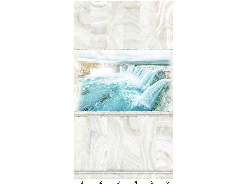 Панели ПВХ Панда Оникс - это светлая коллекция с пейзажем струящегося водопада. Основной акцент сделан на фоне, имитирующем светлый полудрагоценный камень оникс. Пласты перламутрового камня завораживают. Интерьер, украшенный панелями Оникс, выглядит стильно и дорого.