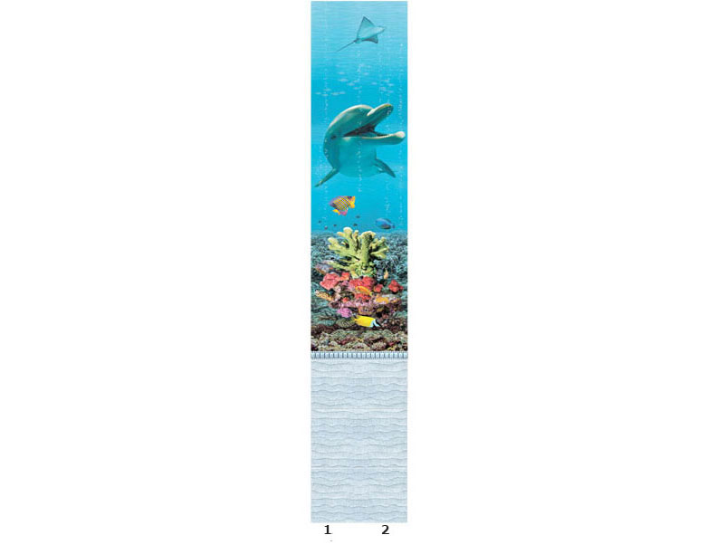 Панели ПВХ Панда Подводный мир добор 2 - это добор с изображением яркого подводного пейзажа и дельфина. Зрелищная панорама подводного мира с морскими черепахами, дельфинами, кораллами и другими подводными жителями изменит любое пространство и украсит интерьер. Полная коллекция включает 12 частей. Два вида рисунка разместились на 4 и 6 панелях. Можно комбинировать изображения и доборы на свой вкус, подстраиваясь под размер комнаты.