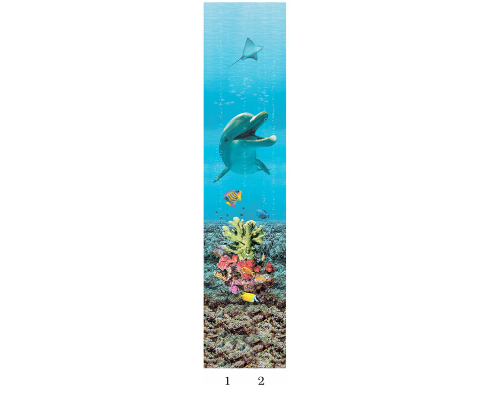 Панели ПВХ Панда Подводный мир new добор 2 - это добор, состоящий из двух панелей с изображением дельфина и не имеющий бордюров. Зрелищная панорама подводного мира с морскими черепахами, дельфинами, кораллами и другими подводными жителями изменит любое пространство и украсит интерьер. Полная коллекция включает 12 частей. Два вида рисунка разместились на 4 и 6 панелях. Можно комбинировать изображения и доборы на свой вкус, подстраиваясь под размер комнаты.