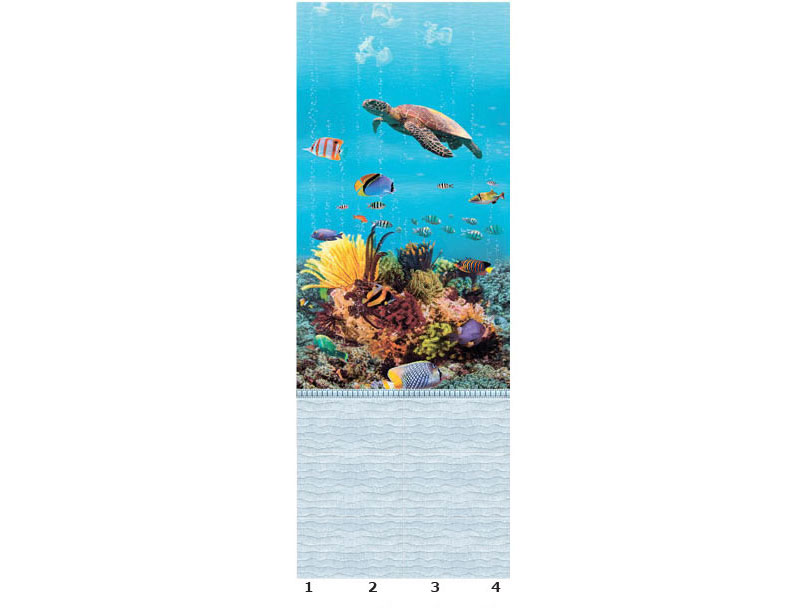Оплата картой онлайн переводПанели ПВХ Панда Подводный мир - это красочный подводный пейзаж с морскими обитателями. Зрелищная панорама подводного мира с морскими черепахами, дельфинами, кораллами и другими подводными жителями изменит любое пространство и украсит интерьер. Полная коллекция включает 12 частей. Два вида рисунка разместились на 4 и 6 панелях. Можно комбинировать изображения и доборы на свой вкус, подстраиваясь под размер комнаты.