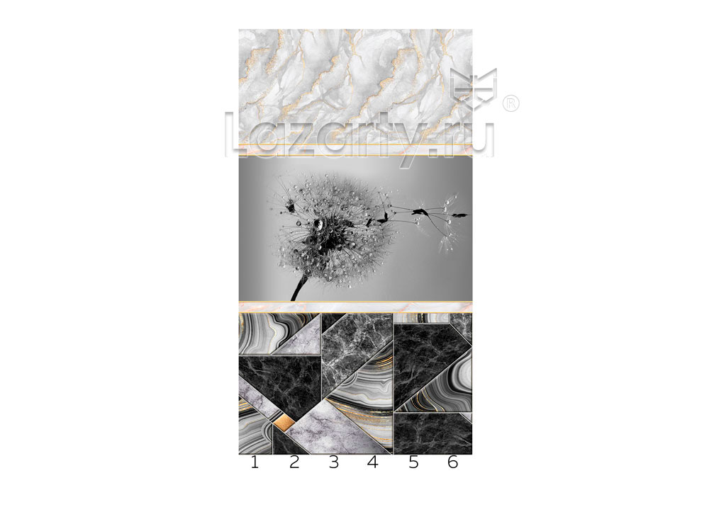 Оплата картой онлайн переводПанель ПВХ Панда рисунок 1 коллекции Полёт с изображением прекрасного одуванчика - великолепная стильная отделка для стен ванной, кухни, лоджии или столовой. Реалистичная имитация под камень - модный тренд в оформлении интерьера. Рисунок 1 серии Полет состоит из 6 ламелей, его можно купить только комплектом.