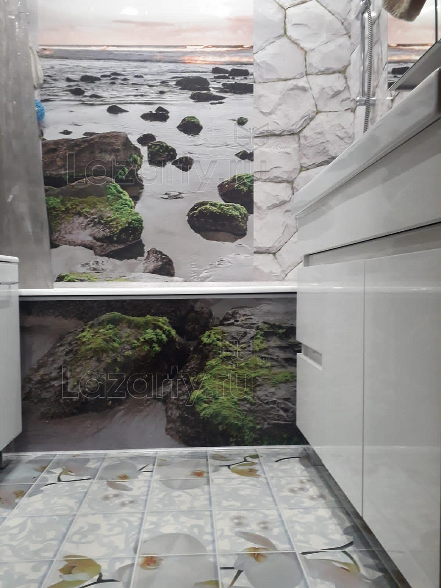 Живописный пейзаж каменистого берега во всю стену станет отличным украшением интерьера и создаст расслабляющую атмосферу.