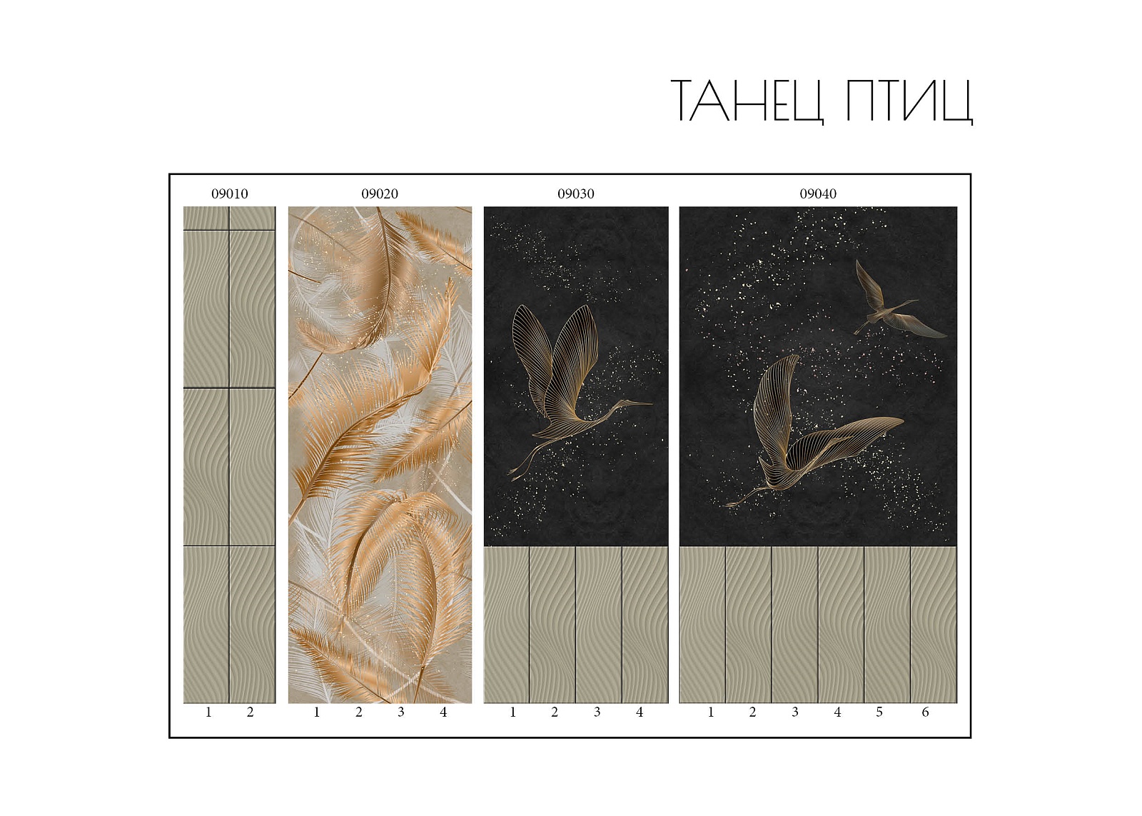 Панель ПВХ Панда Танец птиц (узор Перо) состоит из 4-х панелей.