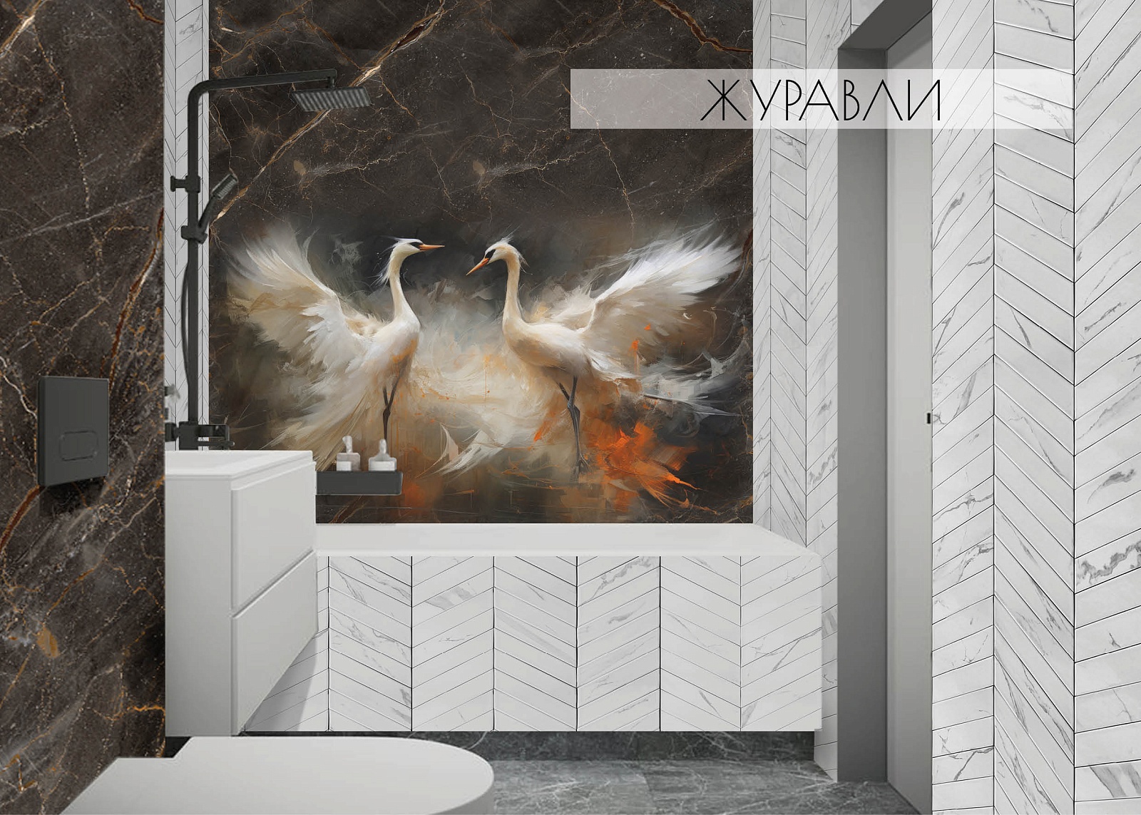 Панель ПВХ Панда Журавли (добор marron) имитирует коричневый мрамор. Состоит из 4 - х штук, последовательно формирующих красивый узор полированного камня. Отпускается по 4 штуки.