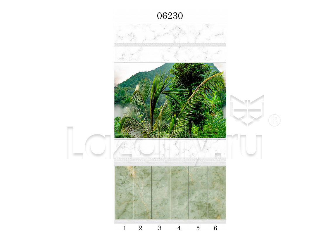Оплата картой онлайн переводПанель ПВХ Панда Тайна природы рисунок 1 состоит из шести ламелей и продаётся комплектом. Низ и верх имитируют камень, в центре - тропический лес с листьями пальмы.