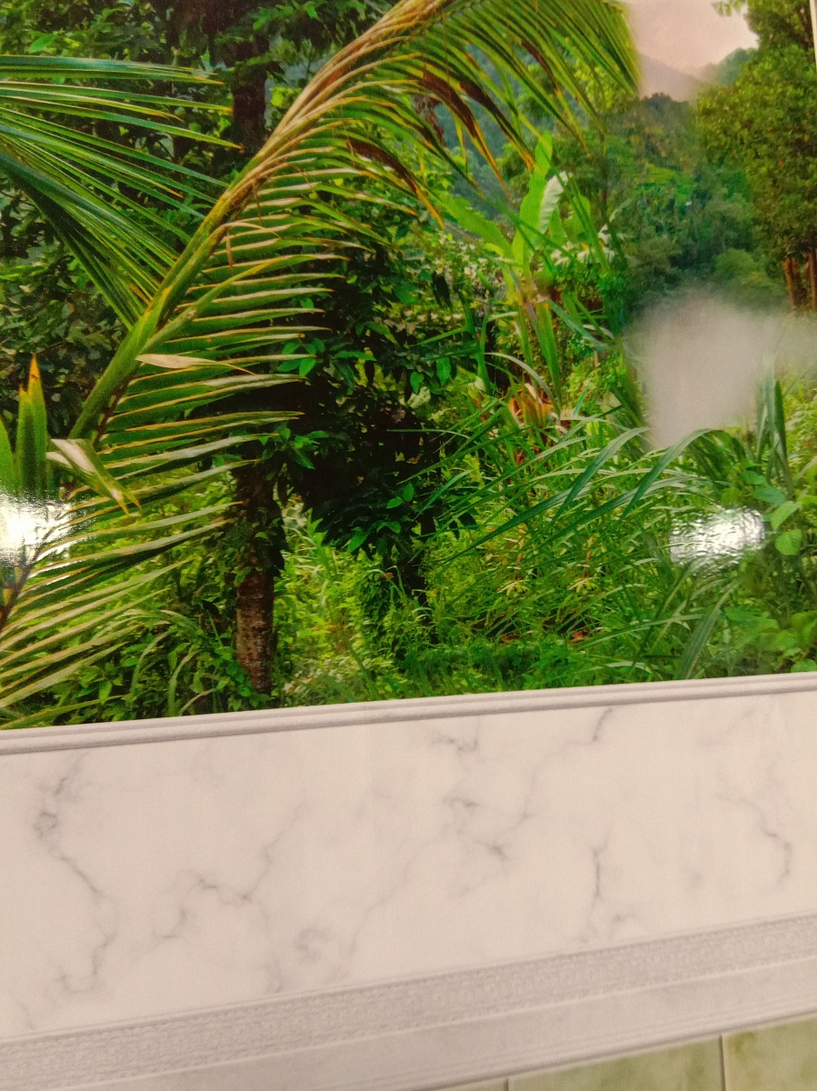 Живописная коллекция Панды с пейзажем тропиков, где предусмотрено 3 вида панно и 1 добор - подходящий способ отделать стены нежилых помещений с нормальным или повышенным уровнем влажности: кухни, ванной, лоджии, коридора и общественных мест.