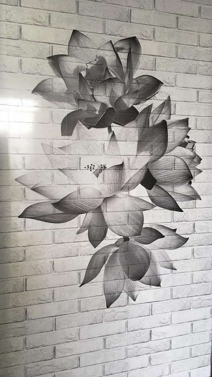 Оплата картой онлайн переводРисунок 1 панелей ПВХ Панда монохромной коллекции Цветочные узоры – это комплект из 4х ламелей с изображением цветов на фоне белой кирпичной стены.