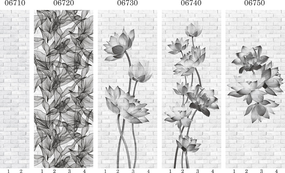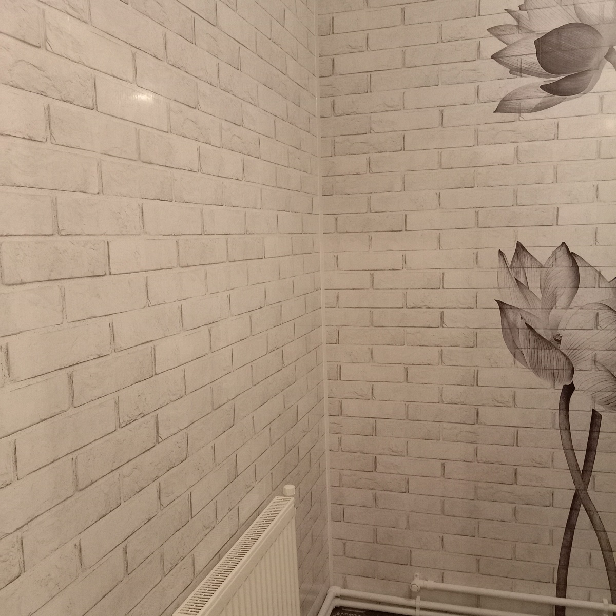 Оплата картой онлайн переводРисунок 2 панелей ПВХ Панда монохромной коллекции Цветочные узоры – это комплект из 4х ламелей с изображением цветов на фоне белой кирпичной стены.