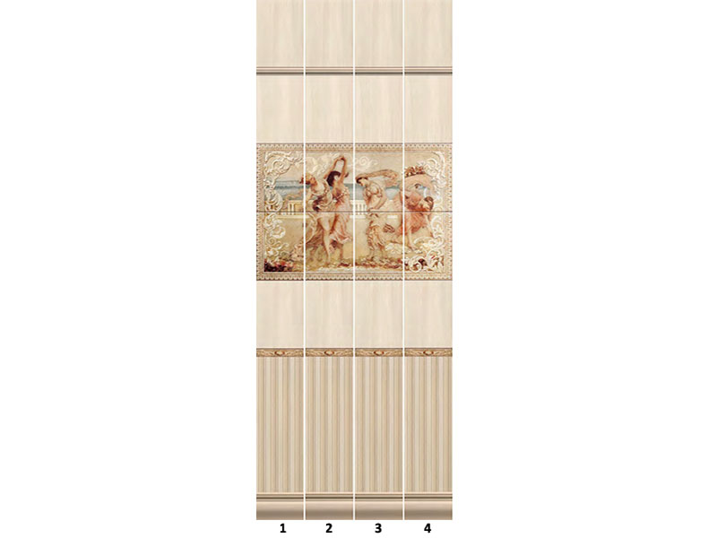 Панели ПВХ Unique Exclusive Флоренция - это великолепная композиция в стиле картин Рубенса или Ботичелли. Четыре античные богини танцуют недалеко от побережья на богато украшенной лепниной площадке. Рисунок состоит из четырех ламелей и продается комплектом.