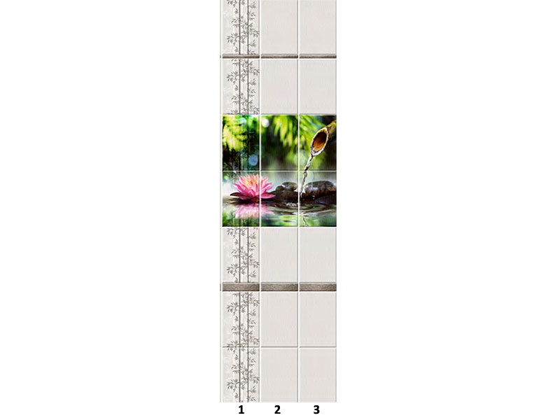 Панели ПВХ Unique Exclusive Гармония Родник с живописным восточным пейзажем в стиле спа и серым лаконичным фоном украсят любой интерьер. Панель-вставка с нежным вертикальным рисунком дополняет и обогащает коллекцию. Рисунок состоит из 3 ламелей и продается комплектом.
