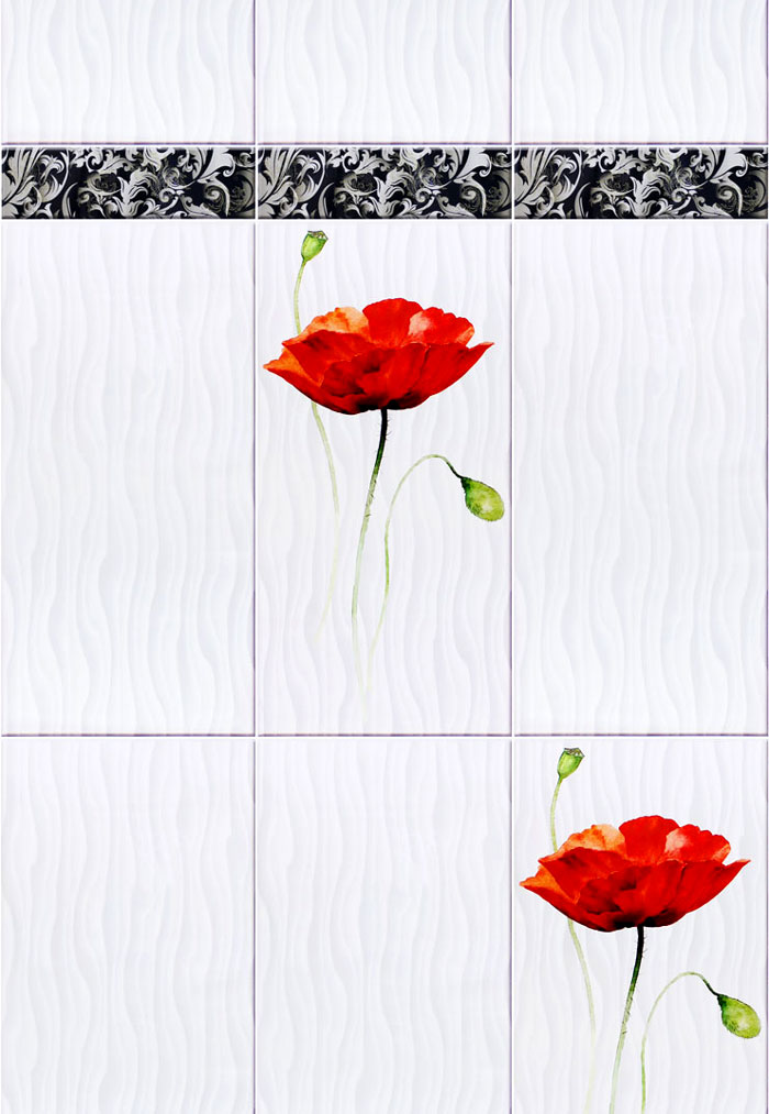 Оплата картой онлайн переводПанель ПВХ Novita Алые маки (добор) с темным резным узором великолепно оттеняет основной рисунок, состоящий из красных маков на белом фоне. Добор украшен растительным орнаментом снизу доверху. Тонкие декоративные бордюры инкрустированы блестками, поэтому имеют мерцающий эффект.