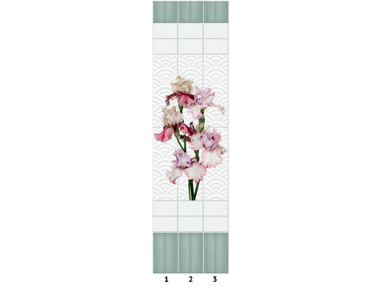 Оплата картой онлайн переводРисунок с нежными цветами ириса коллекции панелей ПВХ Novita Ирис Грин состоит из трех ламелей и продается комплектом. В центре композиции розовые цветы ириса. Декоративный бордюр травянисто-зеленого цвета украшает ламель по низу и верху. Коллекция стилизована под керамическую плитку с характерными стыками.