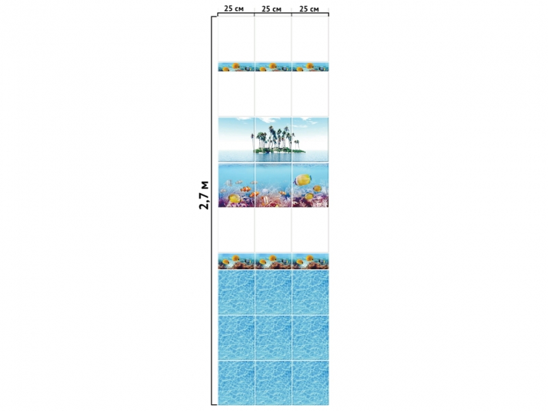 Основной рисунок можно приобрести только комплектом из трех стандартных панелей 2700х250. К рисунку вы можете приобрести дополнительные фоновые панели: доборы