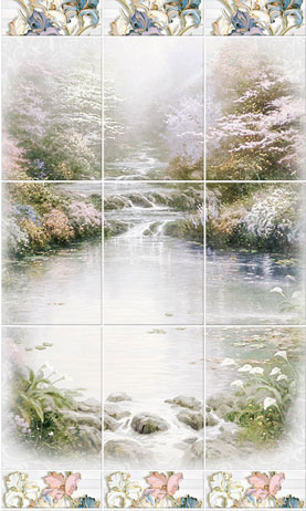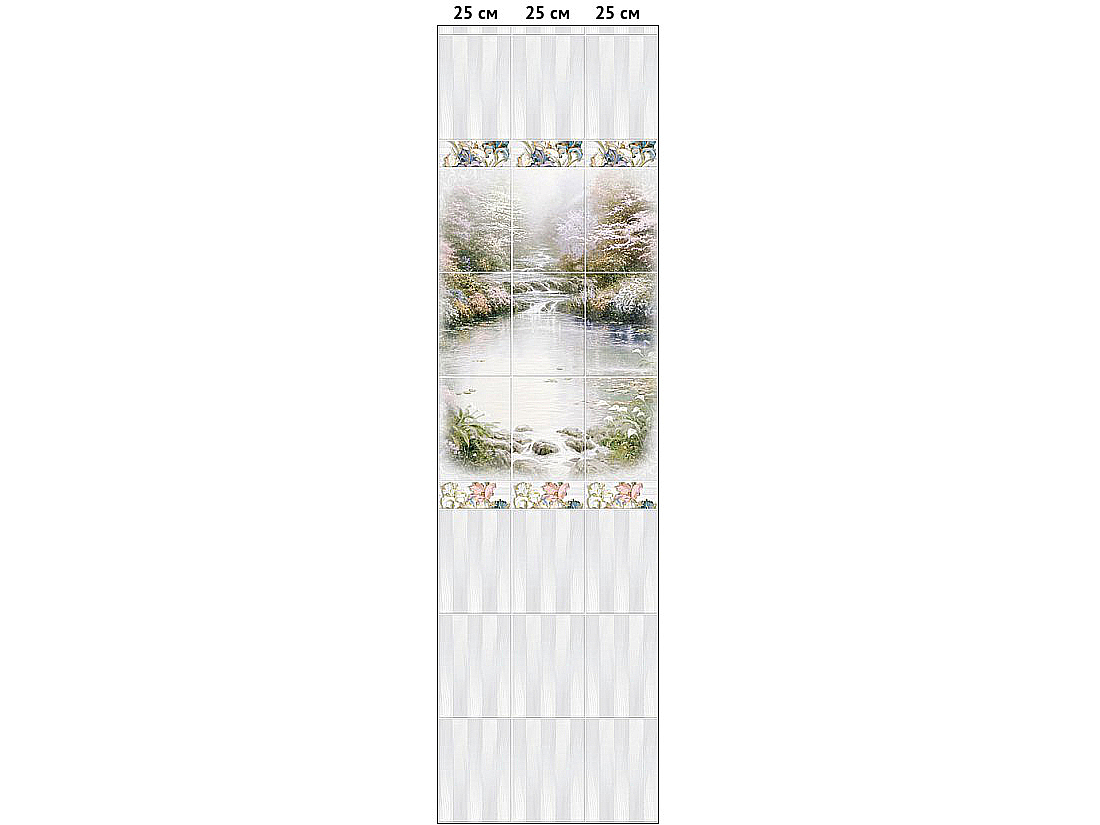 Оплата картой онлайн переводЖивописный рисунок панелей ПВХ Novita Пейзаж Ручей с летней композицией продается только комплектом из трех стандартных ламелей 2700х250 мм. К нему вы можете приобрести дополнительные фоновые панели: доборы.