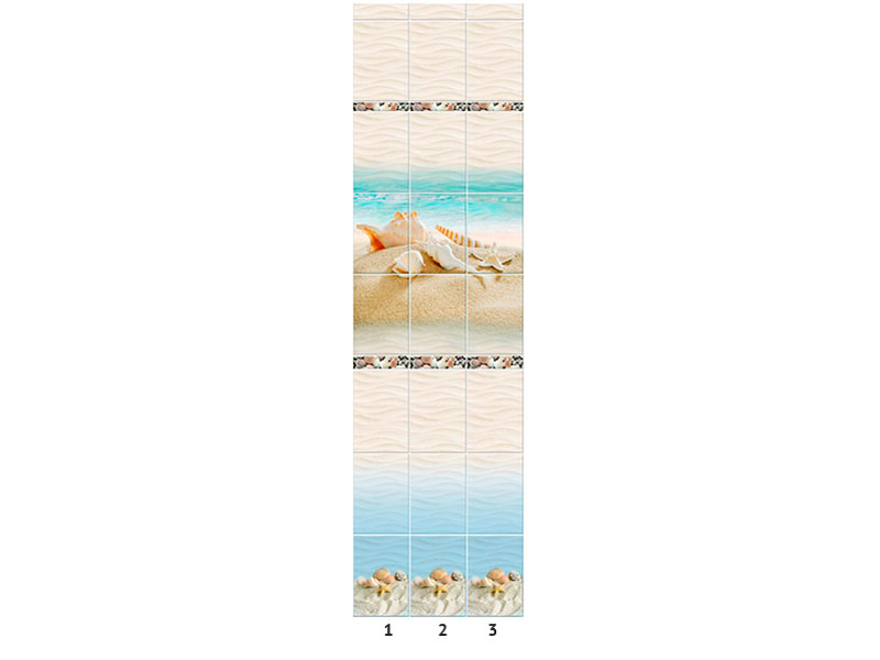 Оплата картой онлайн переводПанель ПВХ Novita Романтика light (узор 2) - это чудесный пейзаж с морскими звездами и ракушками. Он состоит из трех ламелей толщиной 8 мм и продается комплектом. По низу панели - рельефное изображение песчаного пляжа и кусочек голубого моря. Вся коллекция имитирует поверхность рельефной керамической плитки с характерными стыками. В коллекции предусмотрено еще два рисунка и добор, позволяющие оформить стены большого помещения.