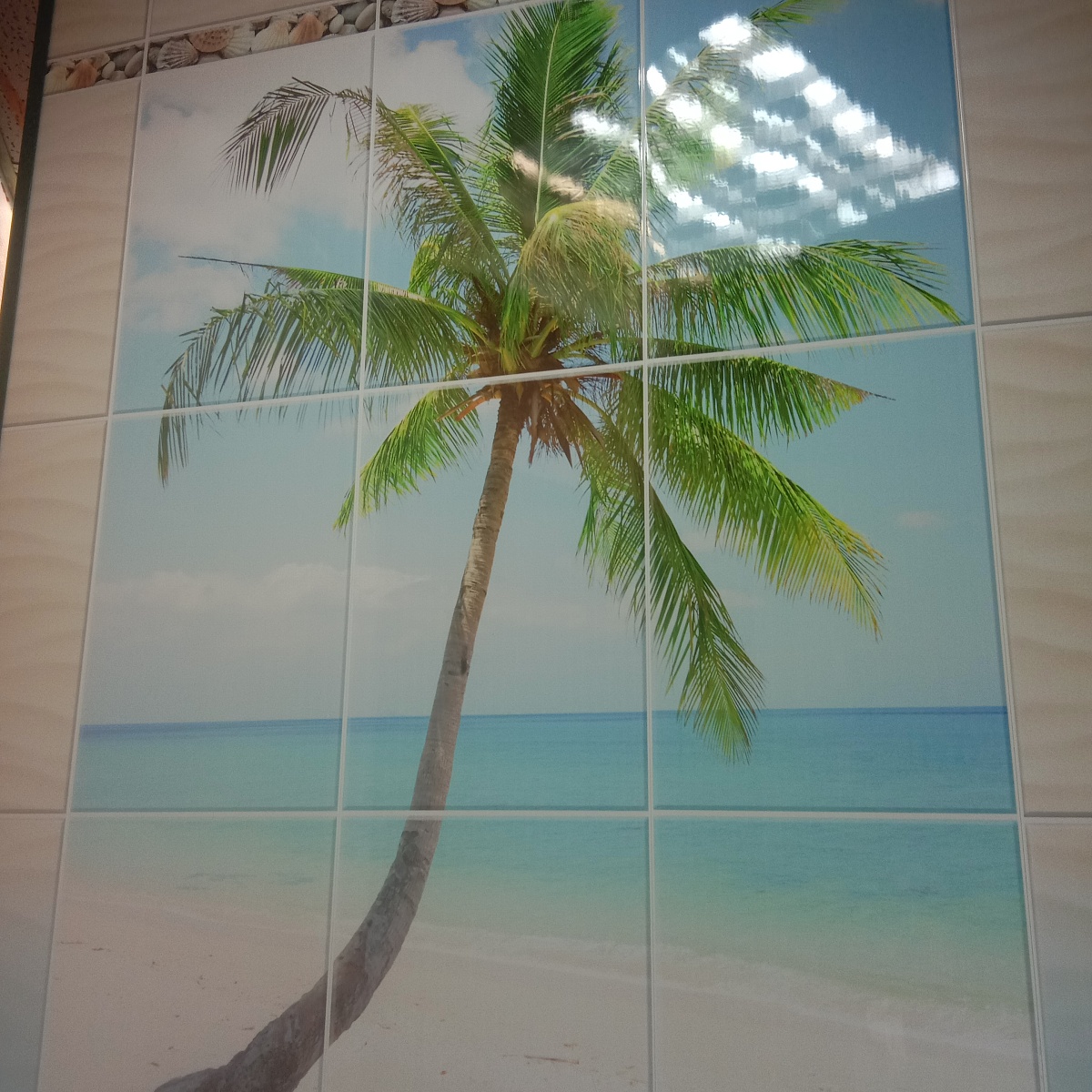 Расстояние от пола до нижнего бордюра - 109см, от бордюра до бордюра - 106см, от верхнего фриза до верхнего края - 44см. Размеры приблизительно учитывают швы между плитками.