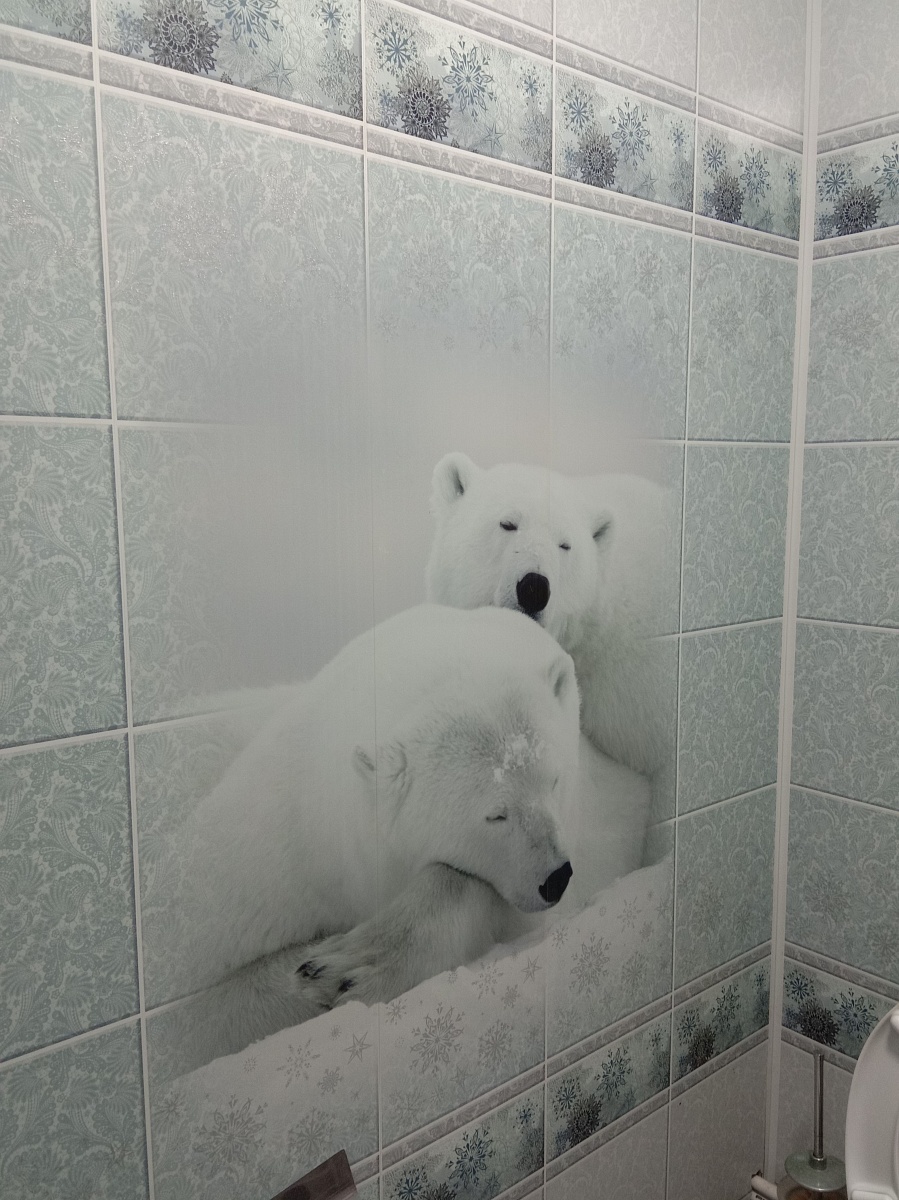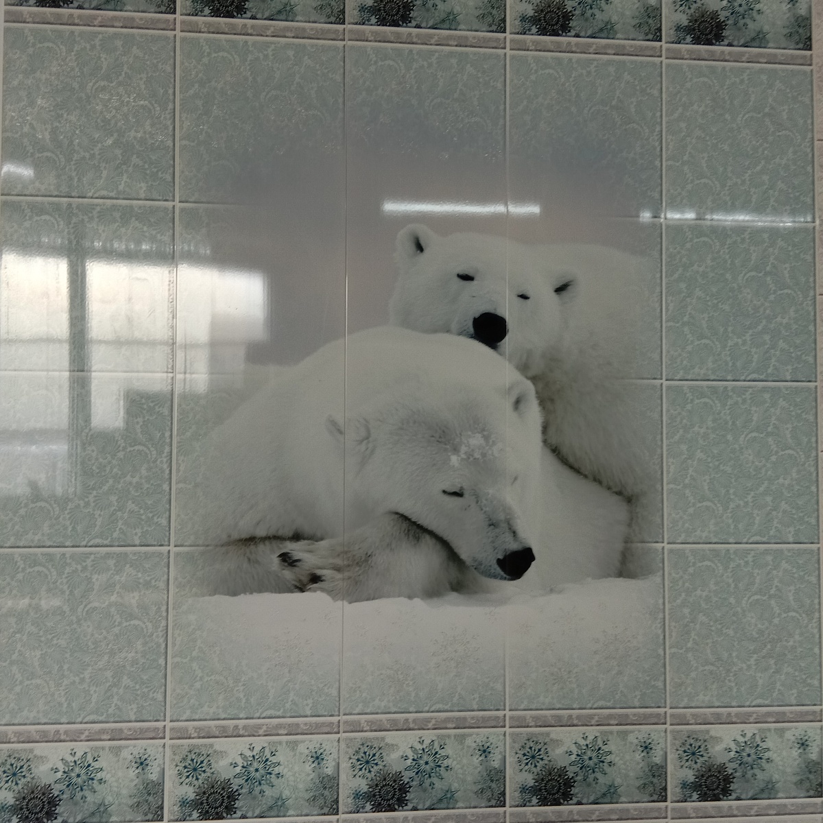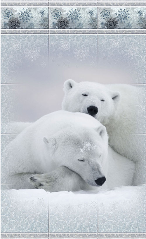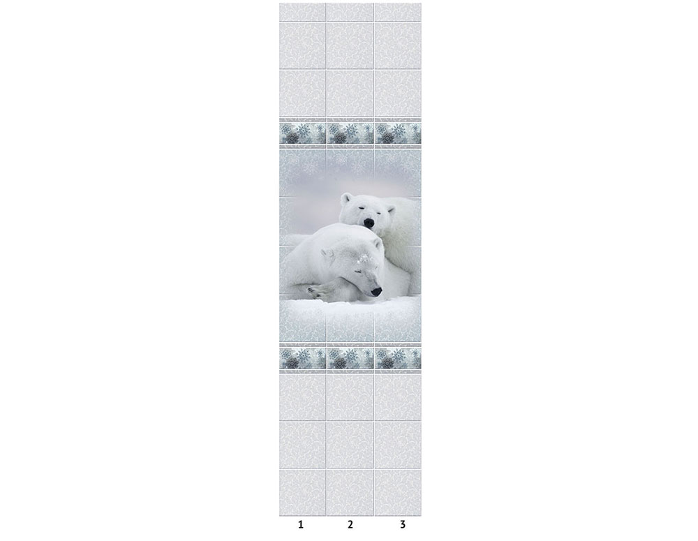 Оплата картой онлайн переводРисунок Медведь коллекции панелей ПВХ Novita Зимняя сказка состоит из трех ламелей. Пейзаж с белыми медведями на снежном фоне станет эффектной отделкой стен интерьера. Бордюр щедро украшен снежинками из блесток (глиттера), поэтому обладает эффектом мерцания.