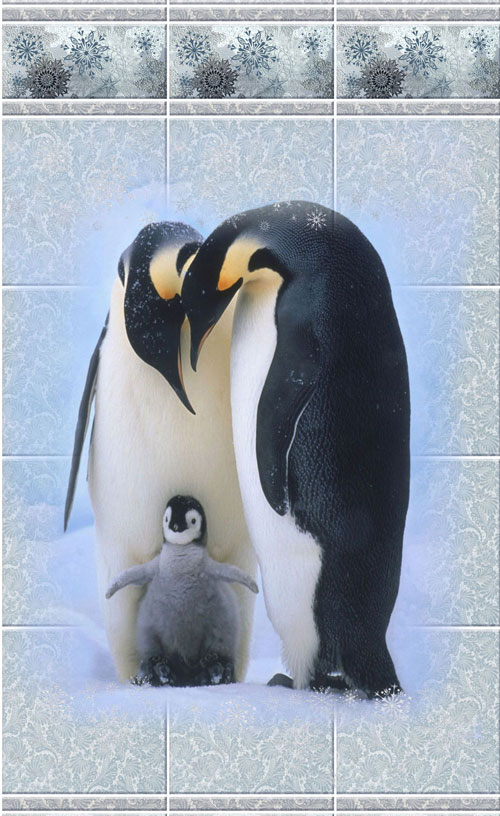 Оплата картой онлайн переводРисунок Пингвин коллекции панелей ПВХ Novita Зимняя сказка состоит из трех ламелей. Панно с дружной семейкой пингвинов, контрастно выделяющейся на белом фоне, станет отличным декоративным элементом интерьера. Бордюр щедро украшен снежинками из блесток (глиттера), поэтому обладает эффектом мерцания.