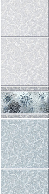 Коллекция Зимняя сказка выполнена "под плитку" и имеет пять красочных панно, на каждом из которых изображение "зимнего" животного: белый тигр, фазан, сова, пингвины, белые медведи. Добор состоит из одной ламели. Он также обладает эффектом мерцания.